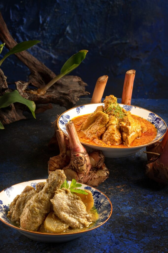 A rich and aromatic dry curry, made with chicken in a thick blend of spices, coconut milk, candlenut, galangal, lemongrass, and kaffir lime leaves.