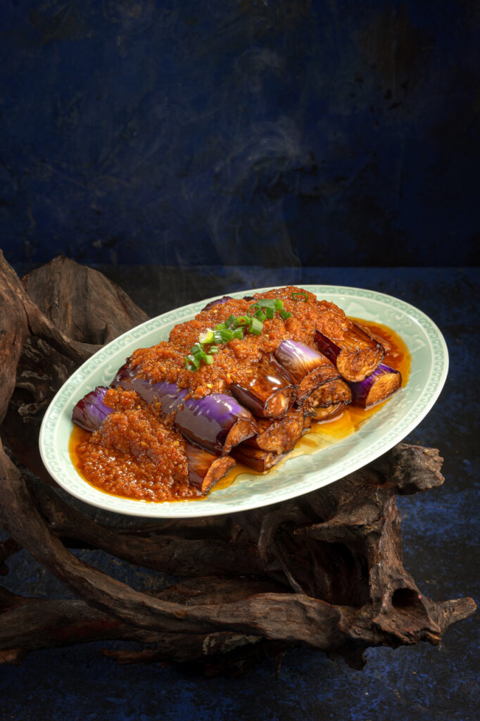 Fried eggplant tossed in a spicy, tangy, and slightly sweet sambal sauce, a signature Peranakan side dish best enjoyed with rice.